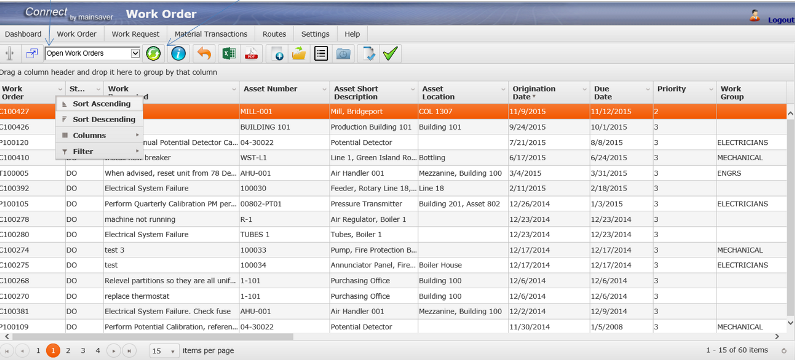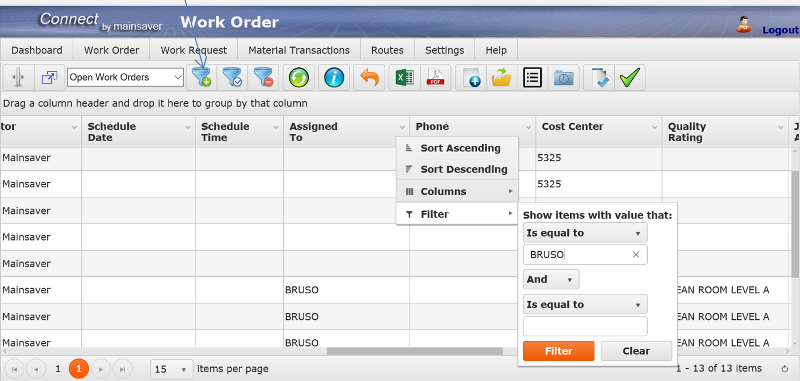 Rather than searching through hundreds of open work orders it is more efficient to have the open work order view default to the records the user needs to see. Mainsaver Connect provides several filtering tools to immediately bring the user to the records they need to see.