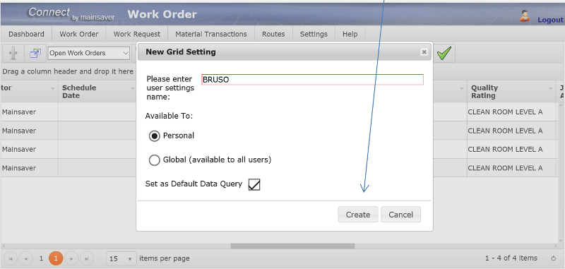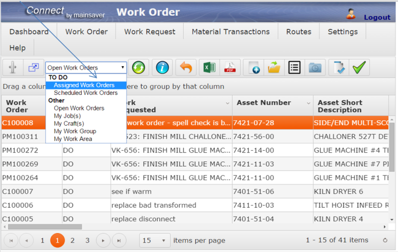Set Default Open Work Order View in Mainsaver Connect
